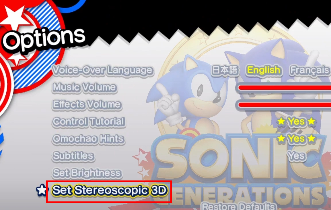 소닉 제네레이션스는 Stereoscopic 3D 옵션이 있어서 vr로 3D 효과를 즐길 수 있습니다.