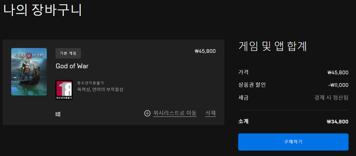 스팀은 연말 세일과 비슷한 느낌인데, 좀 달라진 것이 에픽입니다. 바로 연말 세일 때도 했었던 11,000원 쿠폰 때문이죠.