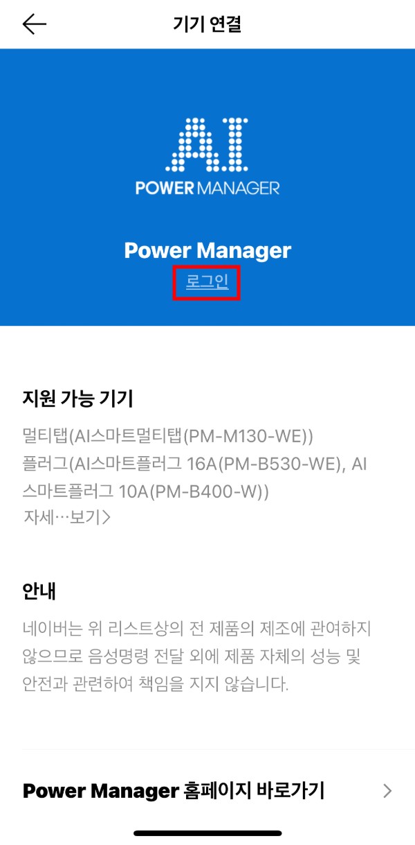 여러 항목 중 Power Manager를 선택하시고 기기 연결에서 로그인을 해주시면 완료!