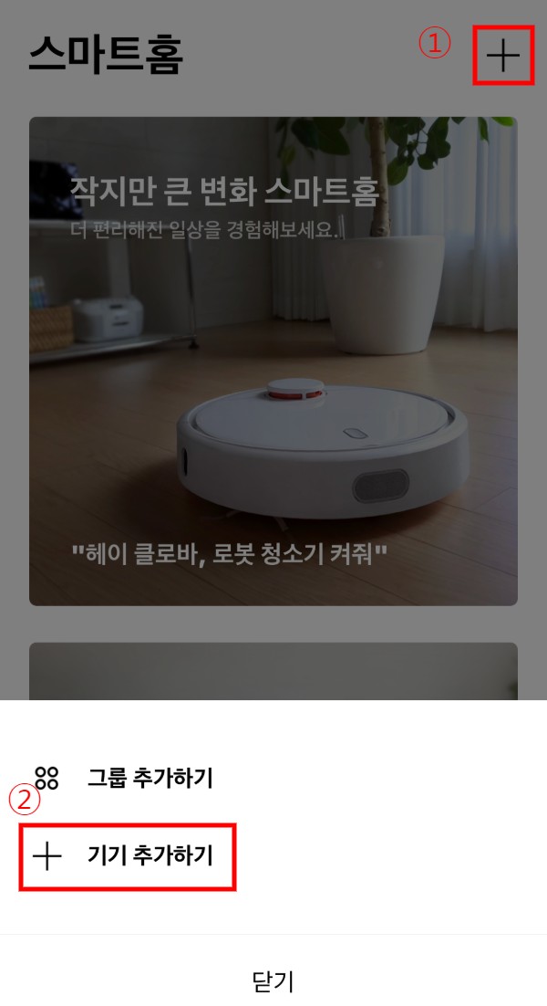 하단의 집모양의 스마트홈 탭으로 가셔서 기기 추가하기를 클릭합니다.