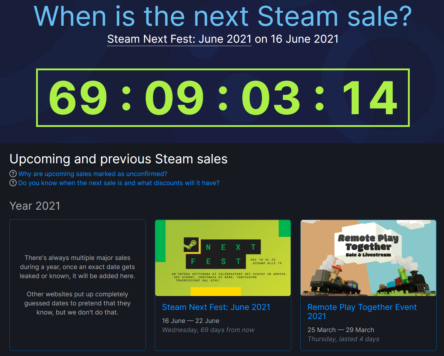 그리고 이 중 더 흥미로운 기능은 바로 When is the Next Steam Sale? 페이지 입니다.