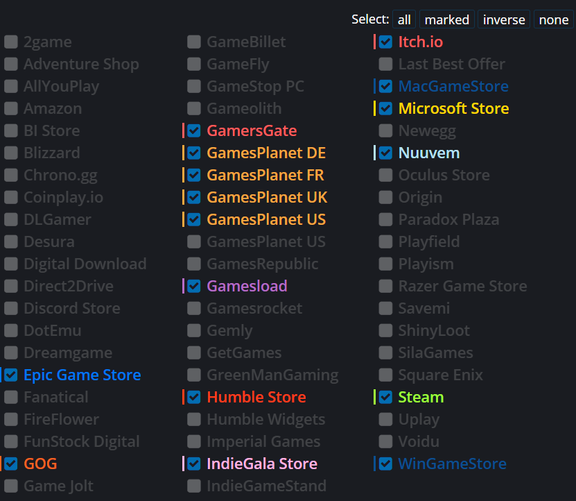 하지만 이 사이트가 game price tracker 류의 사이트 중 가장 좋은 것은 바로 지원하는 스토어 수가 엄청나다는 것입니다.